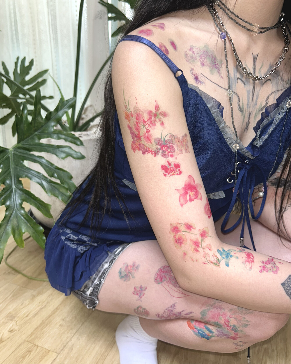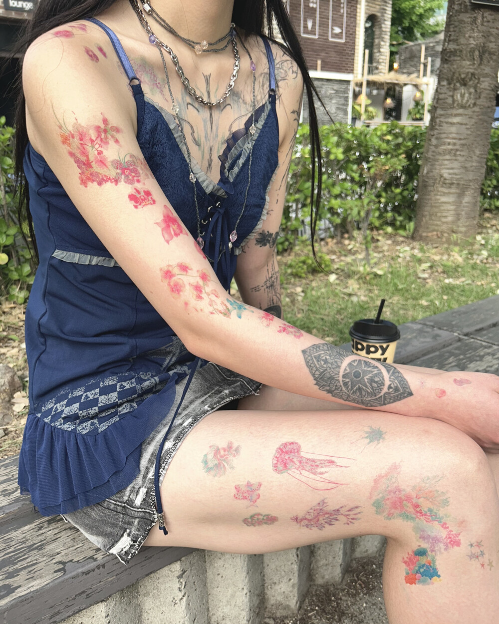 - 건식 타투 스티커로, 물 묻힐 필요없이 부착 가능합니다.
